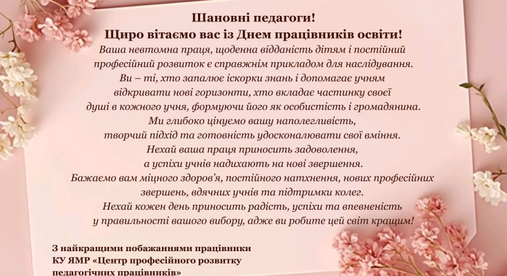 Щиро вітаємо вас із Днем працівників освіти!